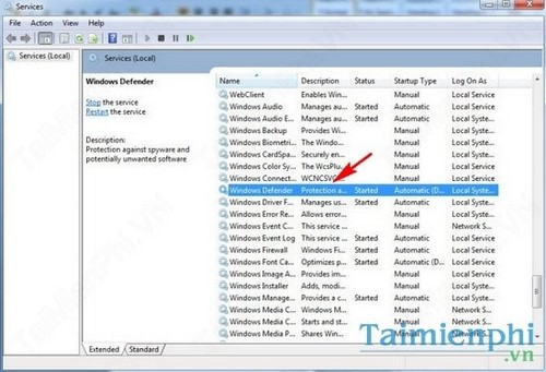 Bước 4: Một cửa sổ mới hiện ra, bạn tìm đến Windows defender và kích đúp vào nó