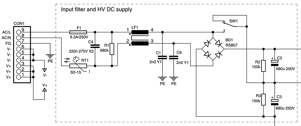 Cuộn lọc nhiễu, tụ nguồn sơ cấp, diode chỉnh lưu