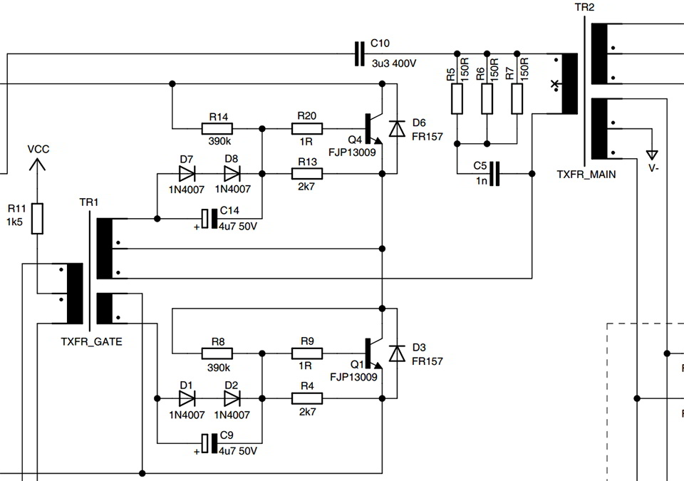 Mạch lái đệm xung cung cấp cho biến thế rung thường sử dụng transistor 2SC2655 và cặp zener ghim áp 1N4752