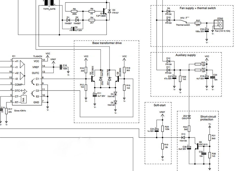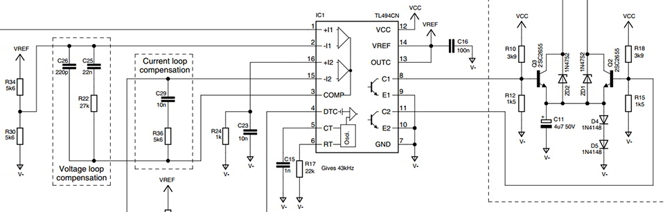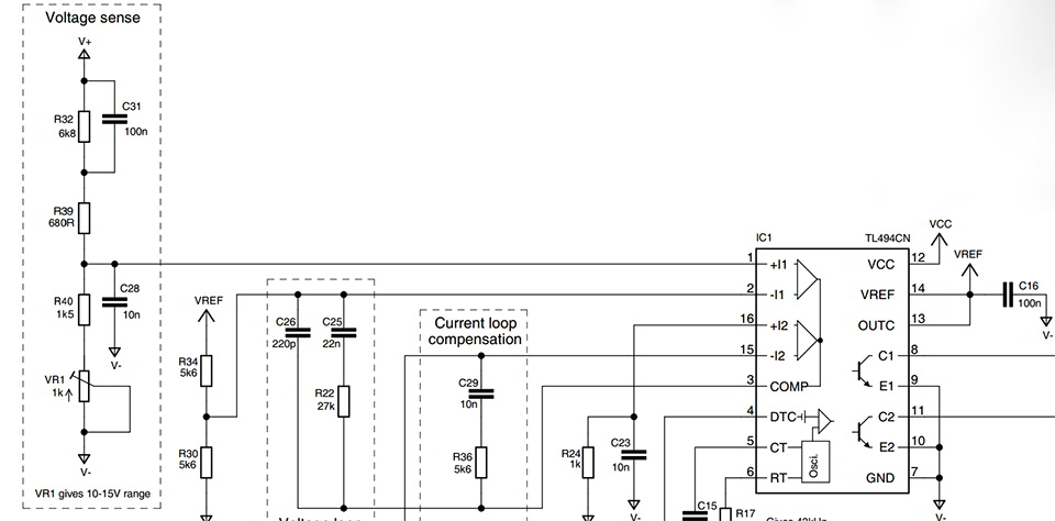 Các khối khác như voltage sense là để chỉnh điện áp ngõ ra, tức sẽ điều chỉnh độ rộng xung PWM của IC TL494